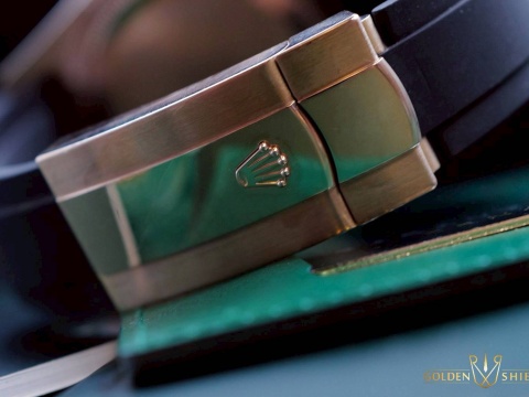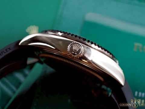 材質: 永恆玫瑰金材質錶殼、摺疊扣、旋入式錶冠、Ring Command三角坑紋可旋轉錶圈 / 巧克力色面盤、夜光鏤空指針立體阿拉伯數字時標 / 專利Oysterflex橡膠錶帶 / 藍寶石水晶玻璃鏡面 / 防偽內圈