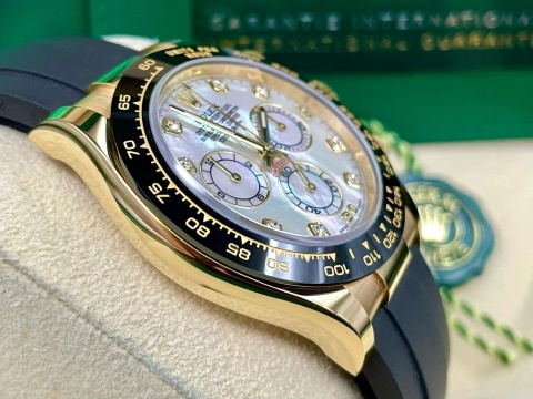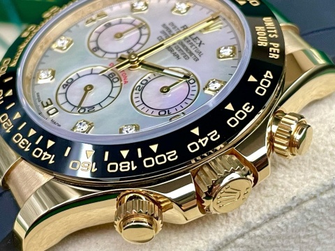 | ROLEX 勞力士 DAYTONA 迪通拿 116518LN 宇宙計時型 黃K金材質 陶瓷框 橡膠帶 白貝母八鑽面盤 自動上鍊 40mm |