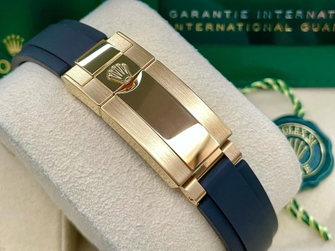 黃金材質錶殼/膠帶及摺疊帶扣 / 白色貝母面盤 / 黑色Cerachrom陶質字圈連鑄模測速計 / 夜光指針及時標 / 旋入式錶冠及計時按把 /
