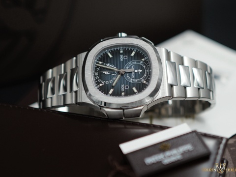 | Patek Philippe 百達翡麗 PP錶 Nautilus 5990 金鷹 鸚鵡螺 鋼王金鷹回歸 藍色漸層橫條紋面盤 5990/1A-011 同軸 計時碼錶 2025年保單 不鏽鋼 自動上鏈 40.5mm |