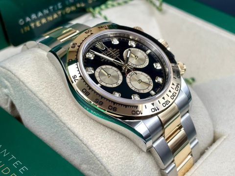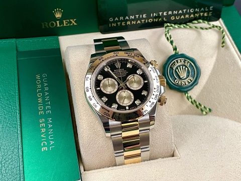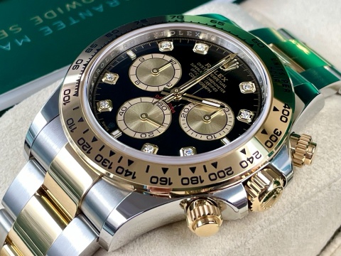 | ROLEX 勞力士 Cosmograph Daytona 迪通拿 126503G 亮黑色面搭配金色計時盤 鑽石時標 計時碼表 18K黃金 半金款 新款4131機芯 賽車錶 自動上鍊 40mm 2024年保單 新式保卡 |
