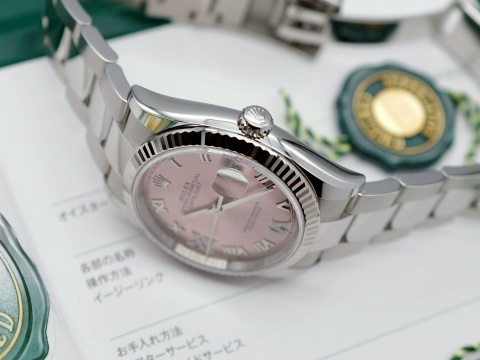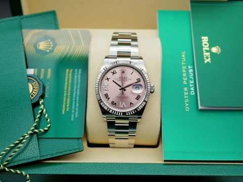 | ROLEX 勞力士 Datejust 126234 蠔式 粉色 2025年保單 新式保卡 羅馬時標鑽面盤 白K金 太陽框 大版帶 蠔式錶帶 自動上鍊 36mm |