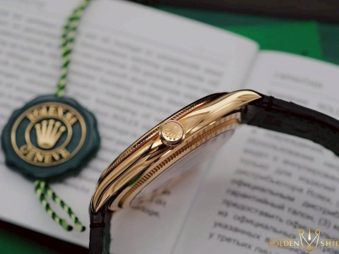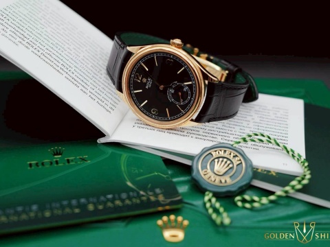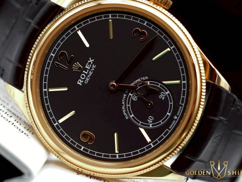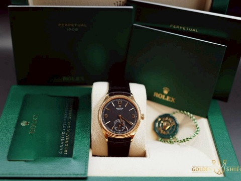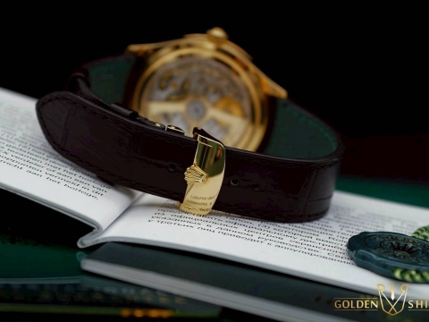 | ROLEX 勞力士 1908系列 52508 醇黑色錶面 磨光效果 搭配3、9、12數字面盤以及透明底蓋 18k黃金材質款 啞黑色鱷魚皮 2025年保卡 |