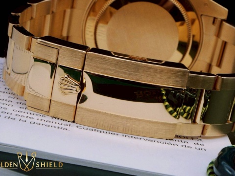 18K黃金、錶帶、摺疊扣、旋入式錶冠 / Cerachrom黑色陶瓷單向旋轉錶外框 / 黑色面盤、夜光賓士指針、時標 /防偽內圈 |