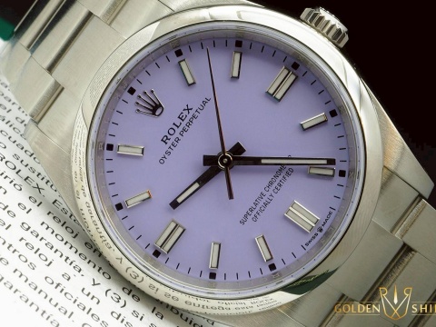 904L不鏽鋼材質錶殼、蠔式錶帶及折疊帶扣 / 薰衣草紫色面盤 / 立體夜光時標及指針 / 旋入式錶冠 / 藍寶石水晶玻璃鏡面 / 防偽內圈 |