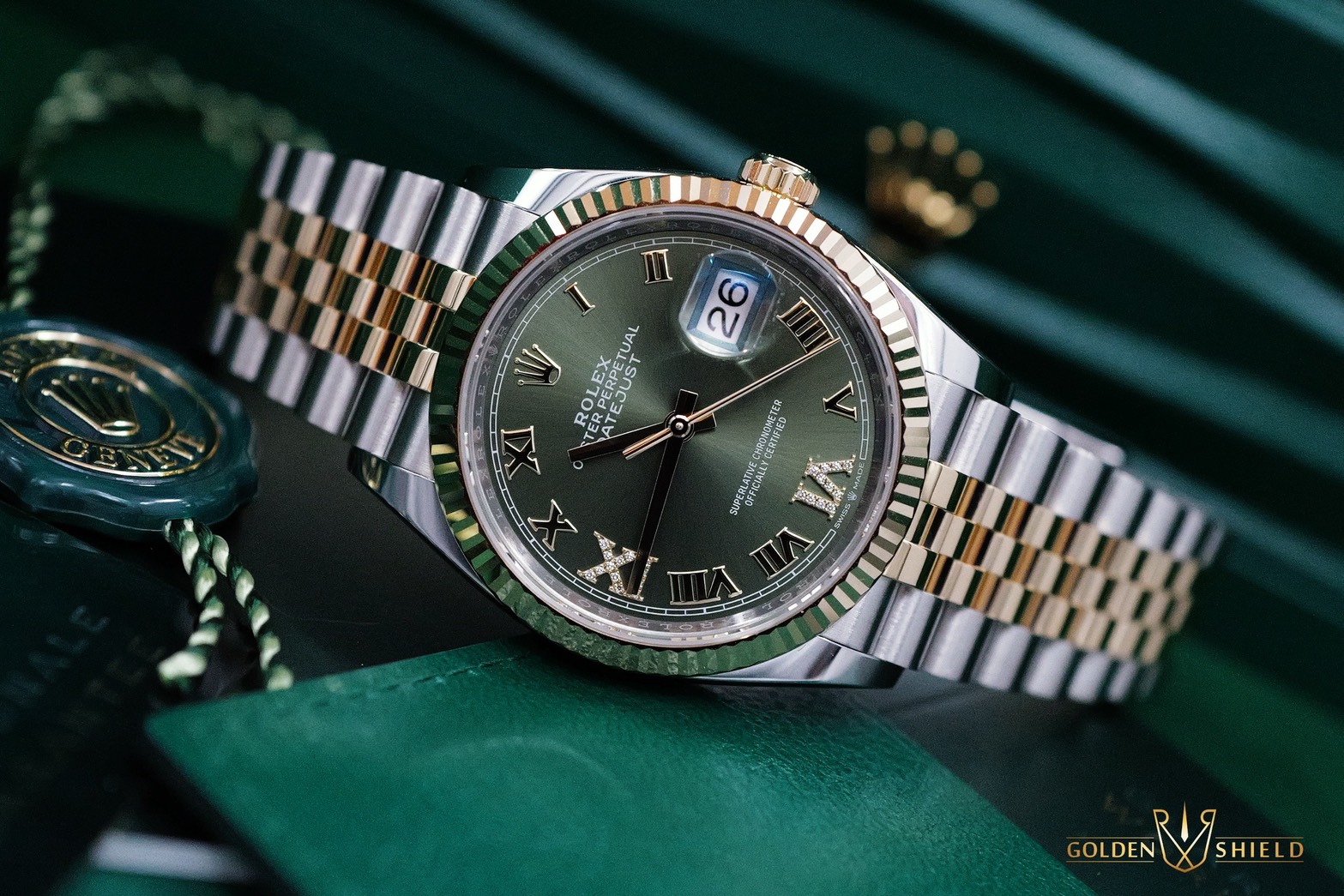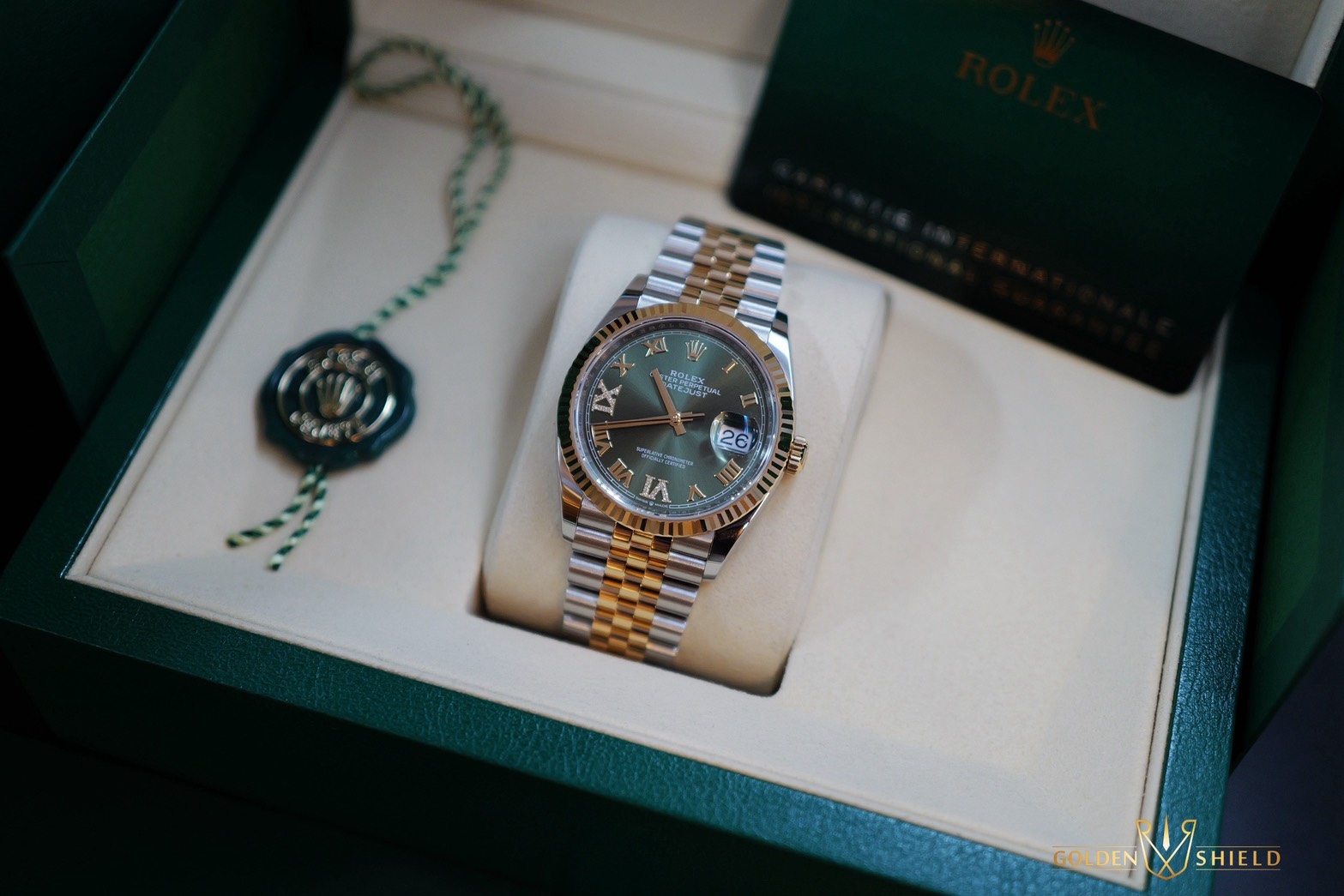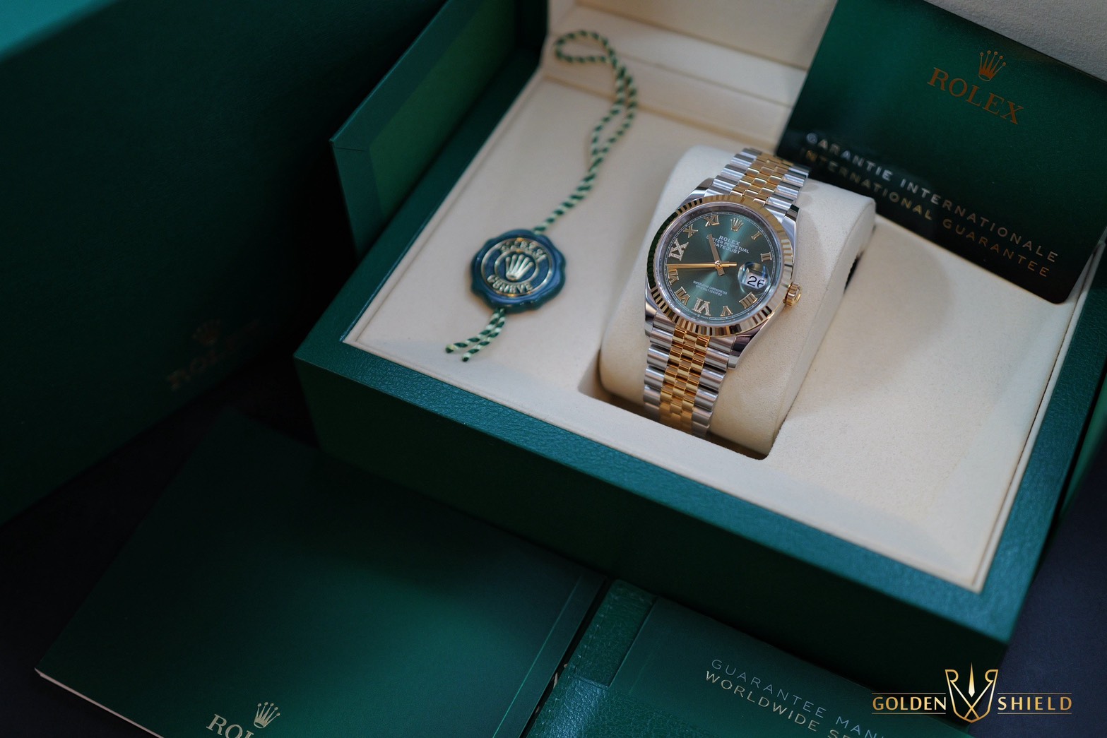 | ROLEX 勞力士 Datejust 126233 綠色面盤 18K黃金 半金款 DJ36 經典三角坑紋錶圈 新式綠卡 3235機芯 36mm 2025年保單 |