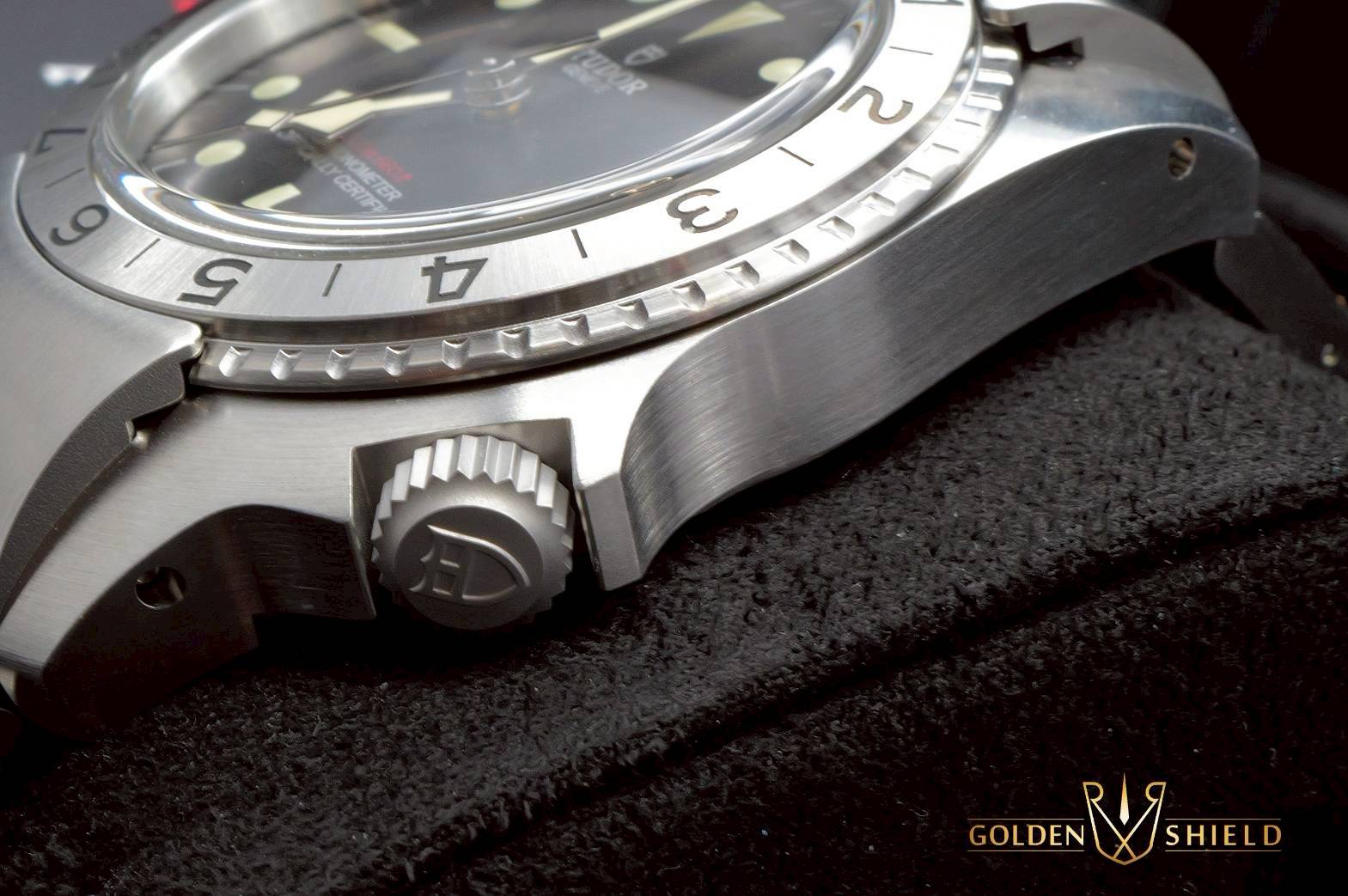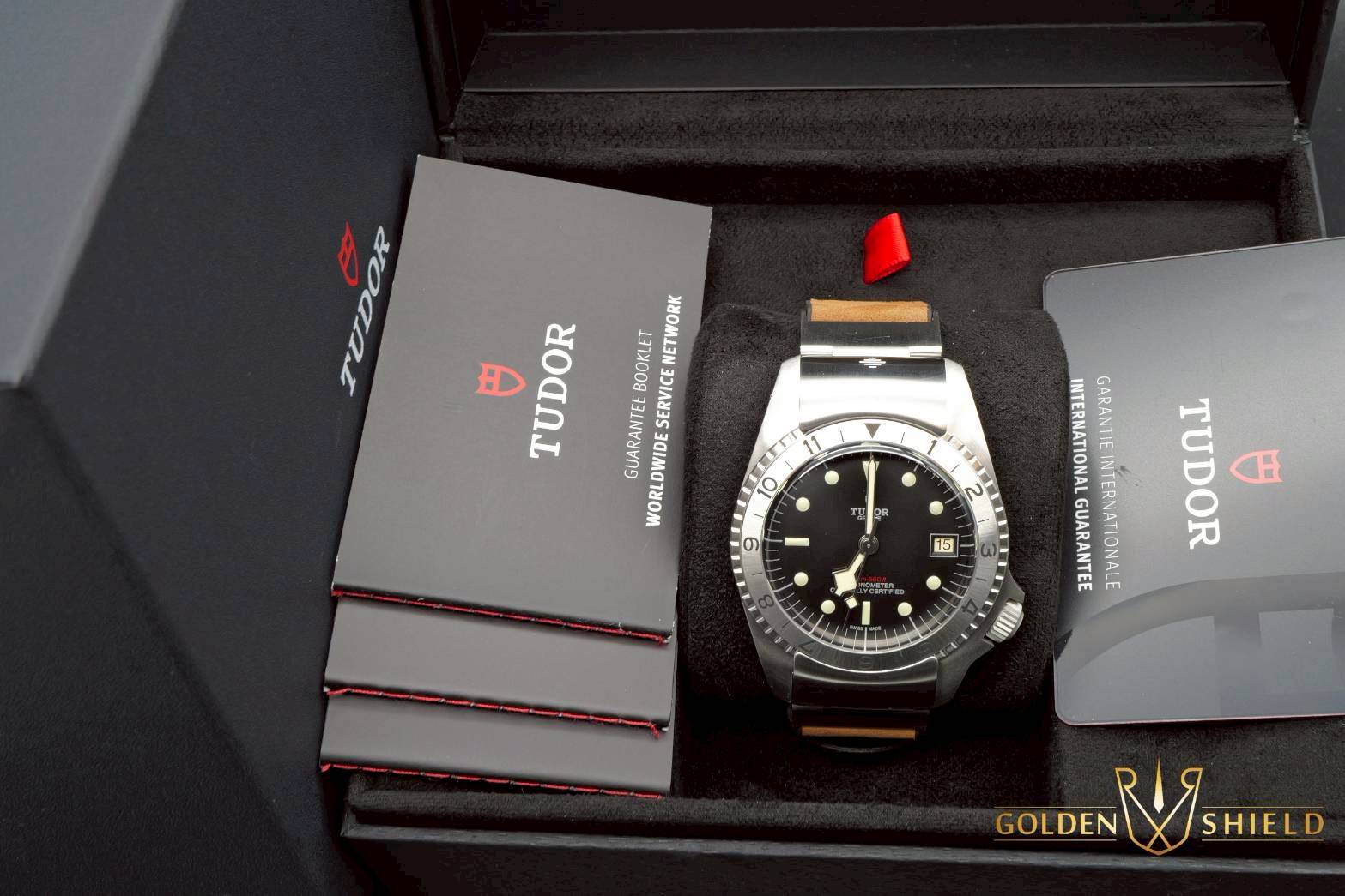 不鏽鋼材質錶殼、鍊帶、摺疊扣、旋入式錶冠 / 黑色面盤 / 夜光時標 / 帝舵表「T-fit」快速調節帶扣 / 藍寶石水晶玻璃 |