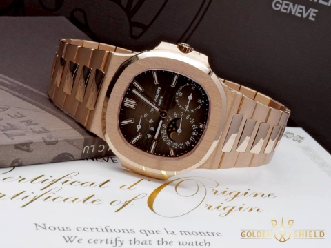 | Patek Philippe 百達翡麗 PP錶 Nautilus 金鷹系列 5712/1R 漸層深灰色橫條紋面盤 玫瑰金材質 月相顯示 收藏者趨之若鶩傳奇款式 PP印記 2026年保單 鍊帶款 |