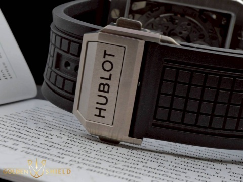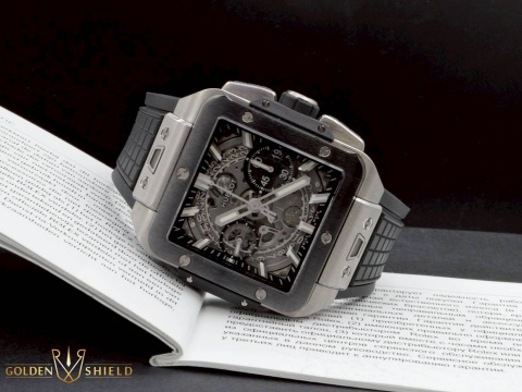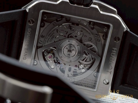 | HUBLOT 宇舶 Square Bang Unico 系列 821.NM.0170.RX 飛返 計時碼錶 鏤空面盤 黑色陶瓷外框 鈦金屬 2023年保單 自動上鍊 42mm |