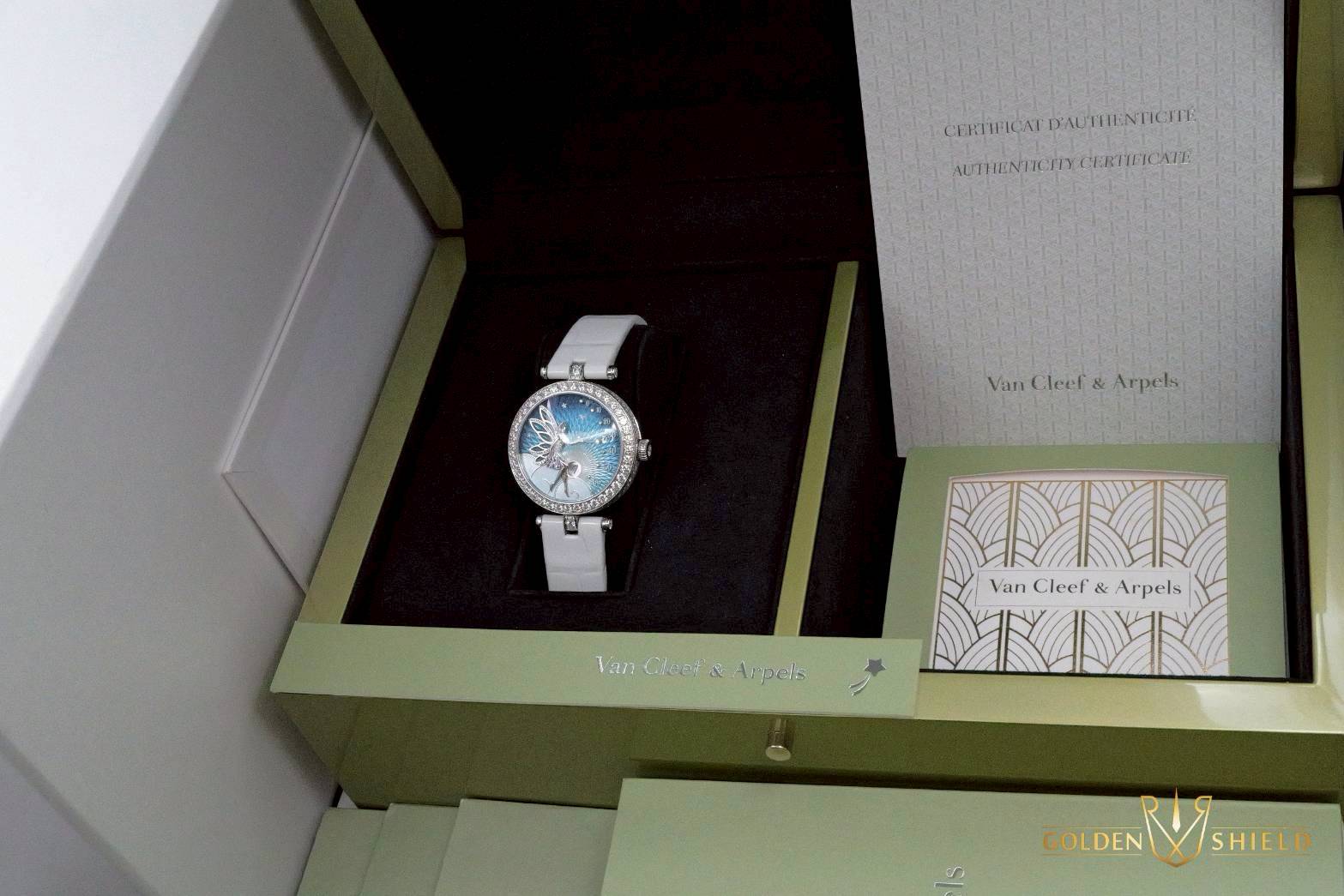 | 梵克雅寶詩意複雜功能系列VCARO8ZD00腕表 白金 珍珠母貝 藍寶石 鑽石 皮帶款 2023年保單 33mm |