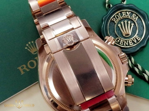 18K玫瑰金材質錶殼、計速儀刻度錶圈、旋入式錶冠、計時按鈕、錶鍊帶及摺疊帶扣 / 夜光指針及時標 / 藍寶石水晶玻璃鏡面 |