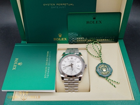 ROLEX 勞力士 Datejust 41 經典 蠔式日誌型 126334 白色面盤搭配柱狀夜光時標 DJ41 不鏽鋼 三角坑紋錶圈 2025年保單 新式保卡 紀念型(Jubilee)五銖錶帶 自動上鍊 41mm