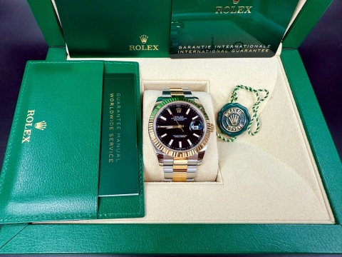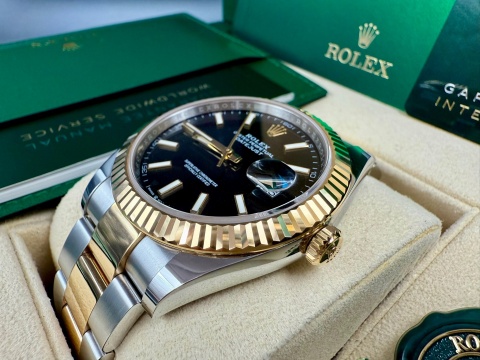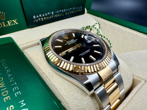 ROLEX 勞力士 Datejust 126333 蠔式日誌型 18K黃金半金款 三版型錶帶款 黑色面盤 自動上鍊 41mm 2025年保單 新式保卡