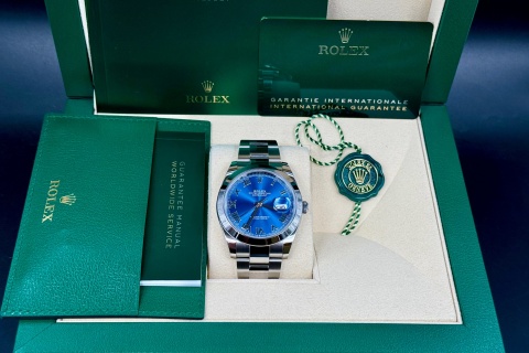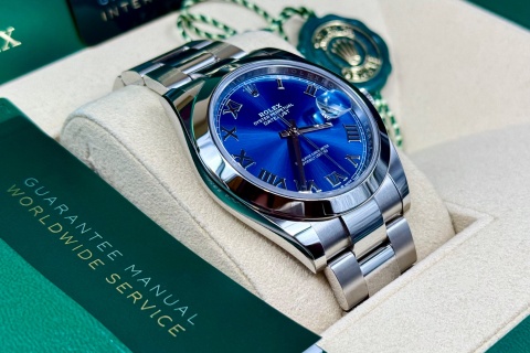 | ROLEX 勞力士 蠔式 DATEJUST II 126300 藍色面盤 羅馬時標 大型 蠔式 自動腕錶 2021年保單 新式保卡 41mm |