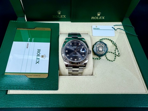 | ROLEX 勞力士 DATEJUST II 126334G 蠔式日誌 126334 不鏽鋼材質 白K金三角坑紋圈勞力士 灰色放射面盤 鑽點時標 41MM 2022年 新式保卡 |