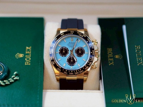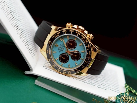 | ROLEX 勞力士 Daytona 迪通拿 126518 宇宙計型 迪通拿 綠松石色面盤 黃金 最新款 4131自動上鏈機芯 新款滑軌錶釦 2025年保單 新式保卡 |