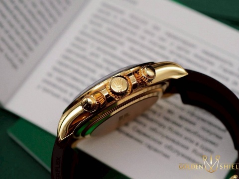18K黃金材質錶殼、錶帶、摺疊扣、旋入式錶冠 / Cerachrom黑色陶瓷視距儀刻度錶框 / 綠松石面盤、夜光指針、立體時標 / 原廠勞力士新式黑色橡膠錶帶 / 藍寶石水晶玻璃鏡面 /