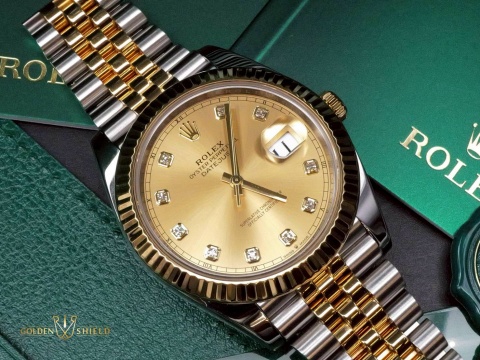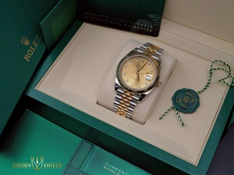 | ROLEX 勞力士 Datejust 126333 18K黃金半金款 皇帝金色面盤 原廠鑲嵌鑽石時標 五珠帶 自動上鍊 41mm 2022年保單 新式保卡 |