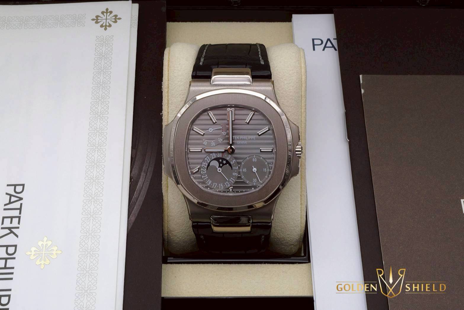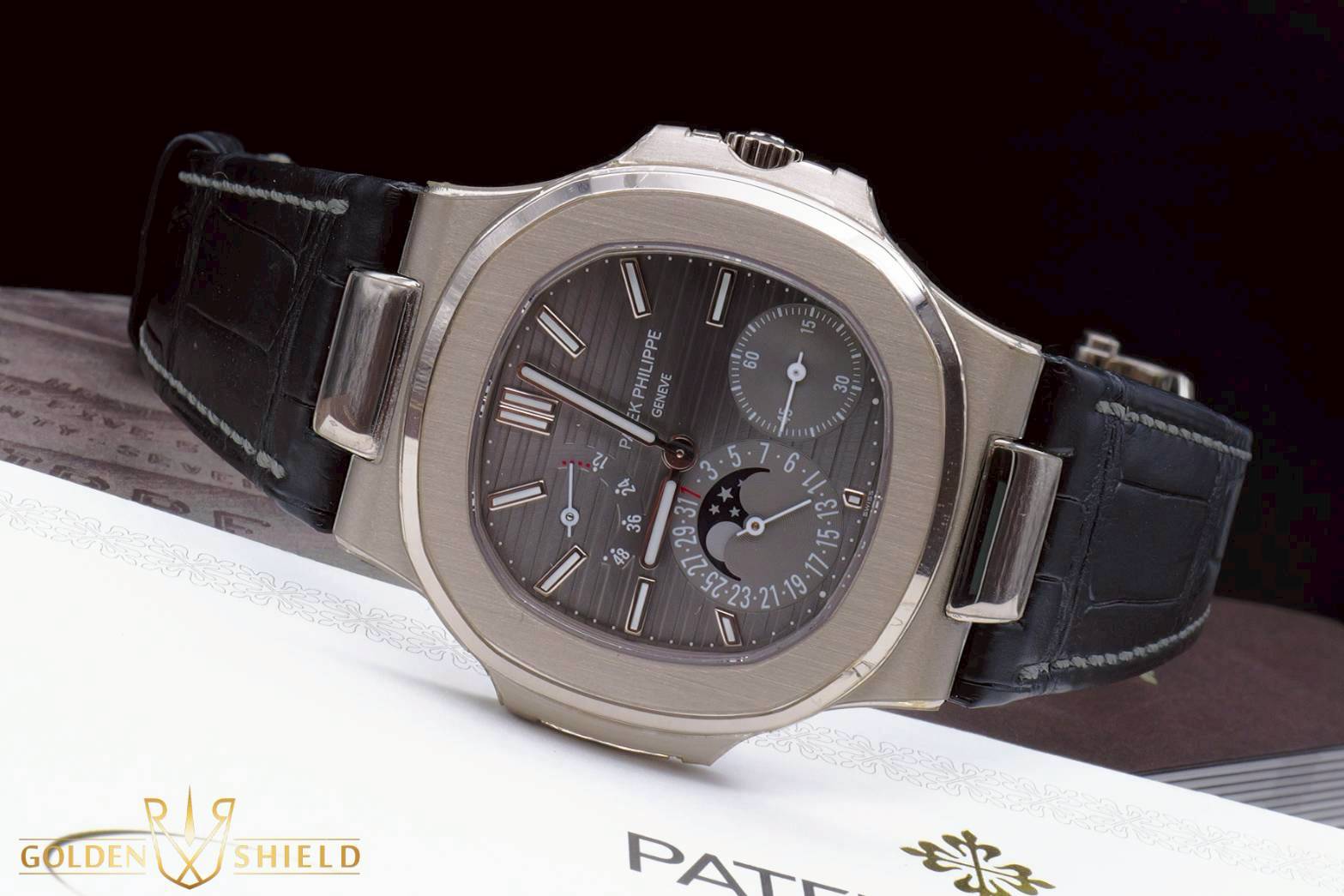| Patek Philippe 百達翡麗 PP錶 Nautilus 鸚鵡螺 5712G-001 金鷹 漸層灰色條橫紋面盤 膠帶款 動能顯示 月相盈虧 自動上鏈 2021年保卡 |